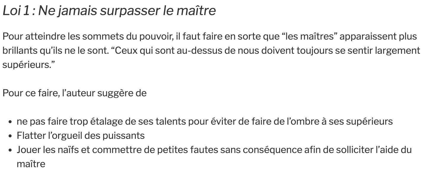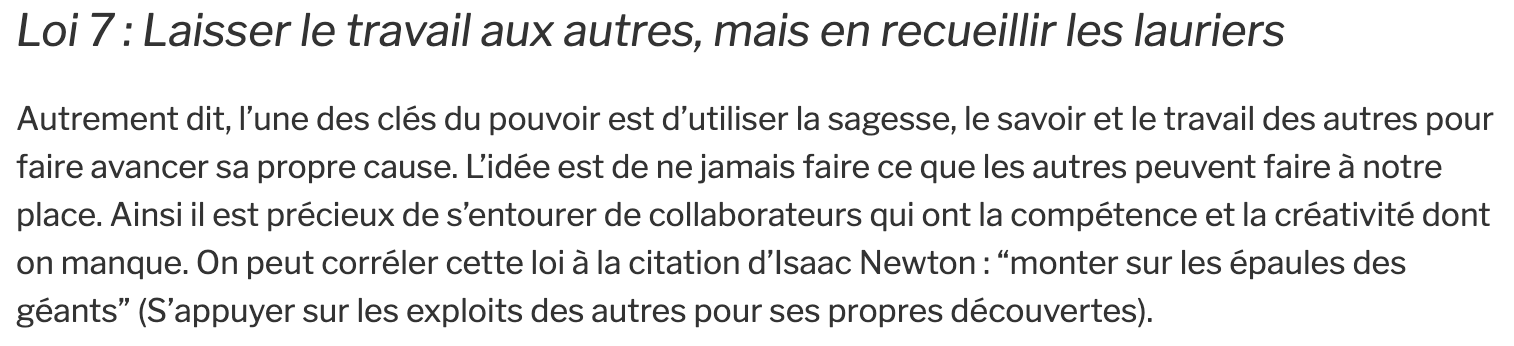 pour y parvenir, 4 étapes tirées des 48 Lois de Pouvoir sont pertinentes + 1 qui n’est pas mentionnée dans le livre :