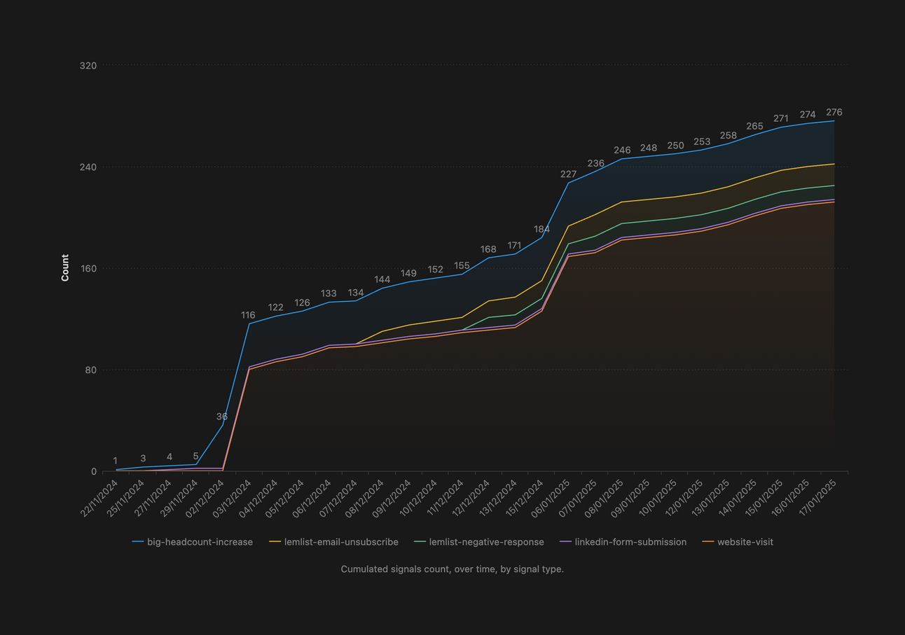 (et puis, même si un signal est émis par un contact stricto sensu, on peut presque toujours le lier à son entreprise — l’inverse n’est pas vrai)