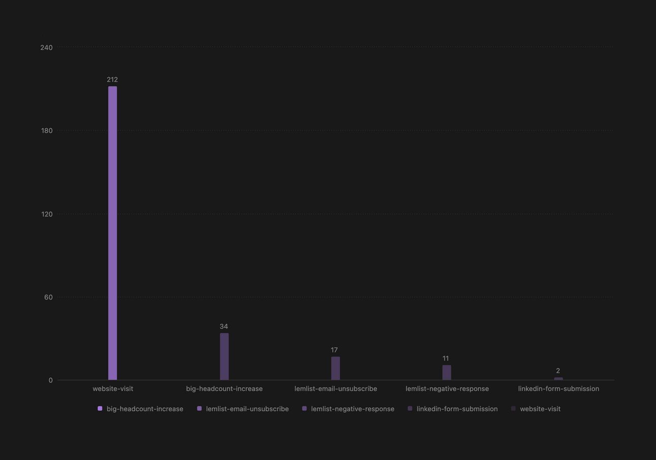 En stockant les signaux d’intent en base de données et en déroulant le blueprint que j’ai exposé, pondre des graphes comme les SUBLIMES Notion charts ci-dessous ne demande pas plus d’un claquement de doigts.