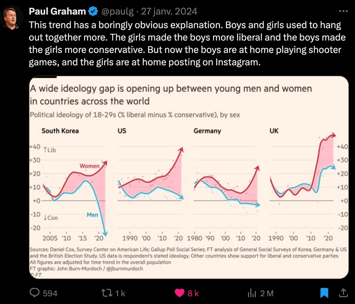 The reality of dating apps → tous les nombres derrières les apps que nous sommes nombreux à utiliser, comment retenir les hommes vs. les femmes sur les apps, différences de comportement entre sexes, monétisation … Fascinant.
